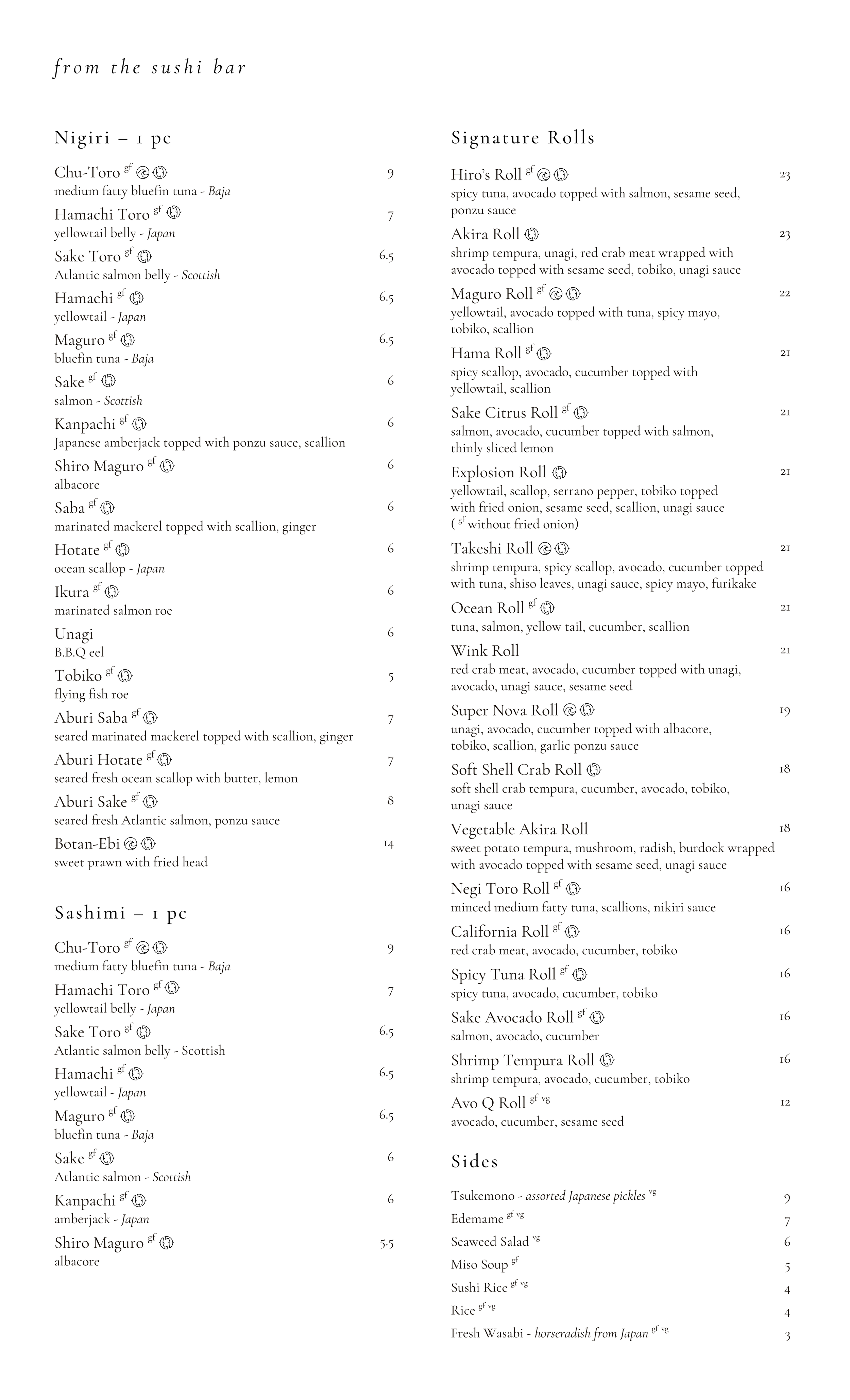 A piece of sushi with rice, seaweed, mushrooms, and green onion, on a black tray with bottles of Japanese sake in the background.