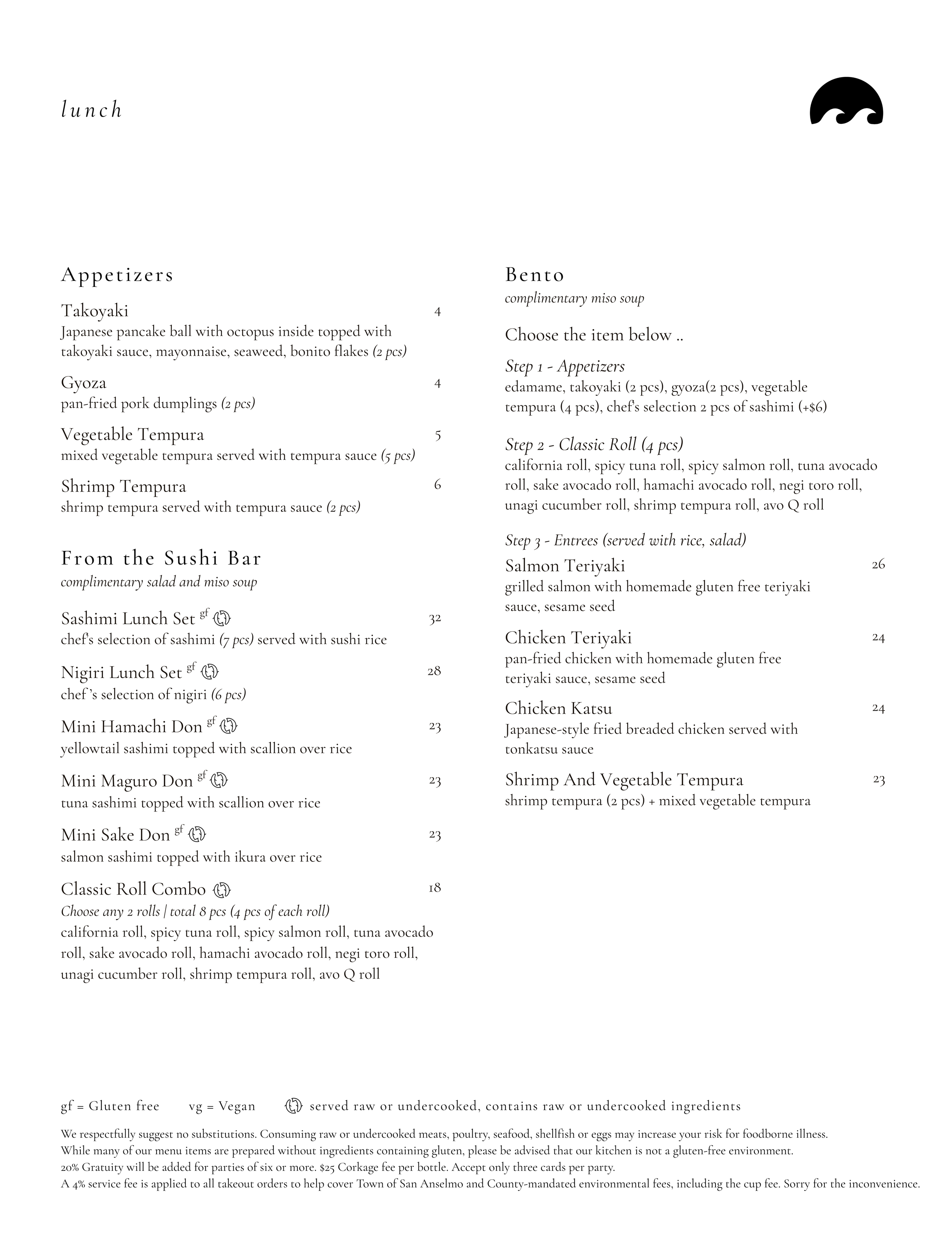 lunch (tuesday – sunday): 11:30am — 2pm