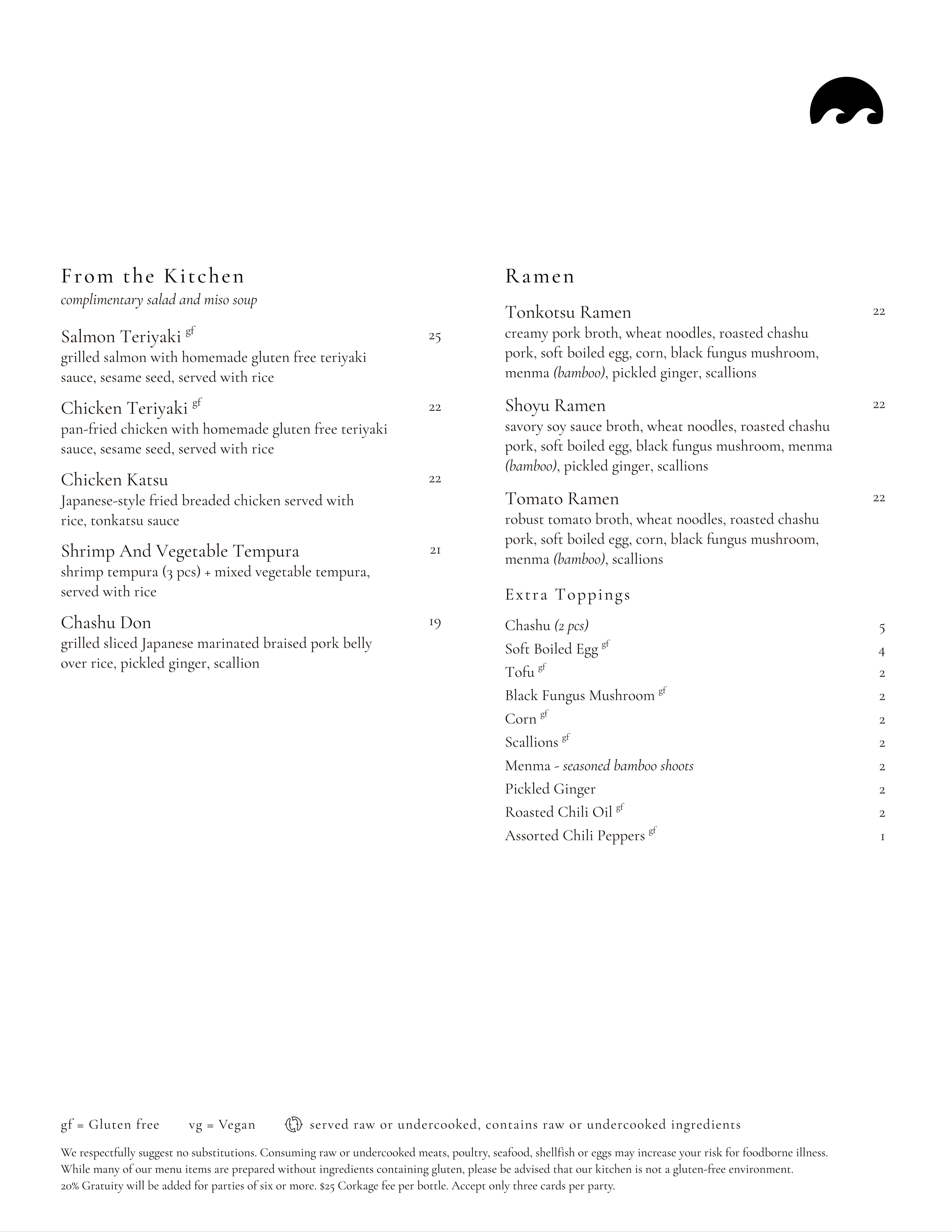 dinner (every day): 5pm — 8:30pm